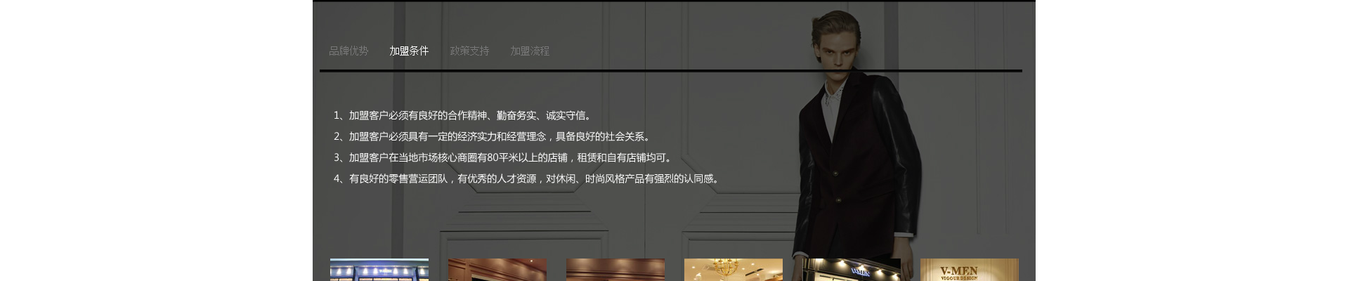 1、加盟商要求:必須具備一定的經(jīng)濟基礎(chǔ)和良好的商譽,具有專賣店經(jīng)營經(jīng)驗和品牌意識。
