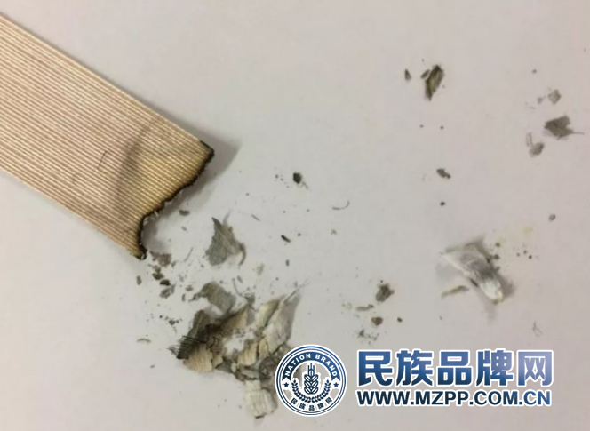 我們拿了一小塊其他壁紙的墻面覆蓋物,燃燒后進(jìn)行測試。但燃燒后出現(xiàn)黑煙,燃燒后形成油狀黑塊,說明這種墻體材料是化學(xué)物質(zhì)開發(fā)的,環(huán)保性能低。