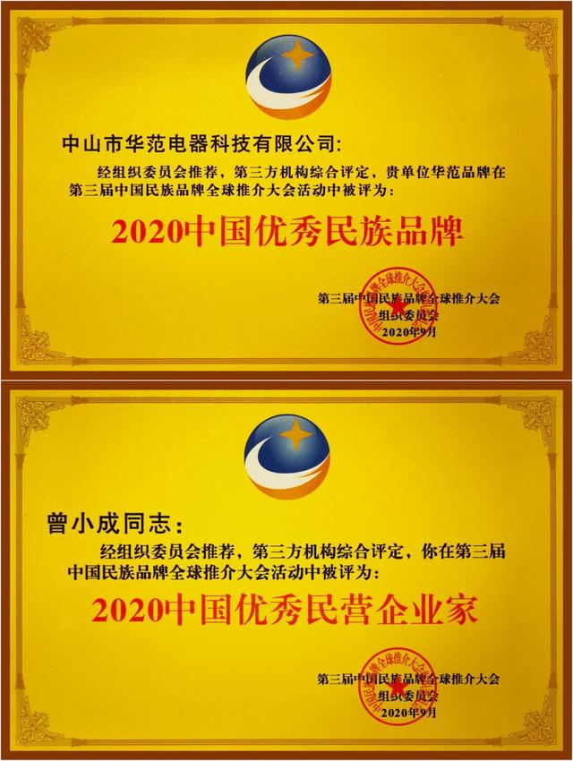 在本次會(huì)議上,中山市華范電器科技有限公司榮膺"2020中國優(yōu)秀民族品牌",集團(tuán)董事長曾小成榮獲"2020中國優(yōu)秀民營企業(yè)家"稱號(hào)。曾小成董事長表示,接過這份沉甸甸的獎(jiǎng)牌就像接過了一種使命、責(zé)任與擔(dān)當(dāng),華范集團(tuán)將繼續(xù)秉承初心!牢記使命!做好中國品牌!做好民族企業(yè)!做好中國人喜愛的熱水器!廚房電器!為中國民族品牌這張名片增光添彩!