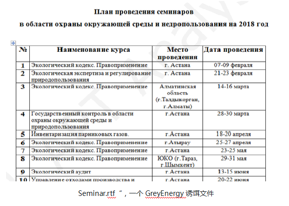卡巴斯基實驗室的工業(yè)控制系統(tǒng)網(wǎng)絡(luò)安全應(yīng)急響應(yīng)小組(ICS CERT)負責(zé)工業(yè)系統(tǒng)威脅的研究和清除,該小組發(fā)現(xiàn)兩臺位于烏克蘭和瑞典的服務(wù)器同時與2018年6月被上述兩個威脅組織所使用。GreyEnergy組織使用這些服務(wù)器來存儲釣魚攻擊活動中所使用的一個惡意文件。當(dāng)用戶打開釣魚郵件中附帶的文本文檔時,該文件會被下載到用戶計算機。與此同時,Sofacy攻擊組織使用這些服務(wù)器充當(dāng)自己惡意軟件的命令和控制中心。由于兩個組織使用服務(wù)器的時間相對都較短,因此這種巧合表明共享基礎(chǔ)設(shè)施。這一設(shè)想得到了證實,因為這兩個威脅組織在一周后都對同一家公司進行魚叉式釣魚攻擊。不僅如此,這兩個組織使用了相似的釣魚文檔,都是假冒哈薩克斯坦共和國能源部發(fā)送的郵件。