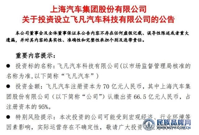 電動知家消息,10月29日,上汽集團發(fā)布公告顯示,公司擬投資設(shè)立飛凡汽車科技有限公司。飛凡汽車注冊資本為人民幣70億元。其中,上汽集團認繳出資 66.5 億元人民幣,占注冊資本的 95%;上海如愿汽車科技合伙企業(yè) (有限合伙)(員工持股平臺)認繳出資 3.5 億元人民幣,占注冊資本的 5%。此外,據(jù)上汽集團相關(guān)人士披露,乘用