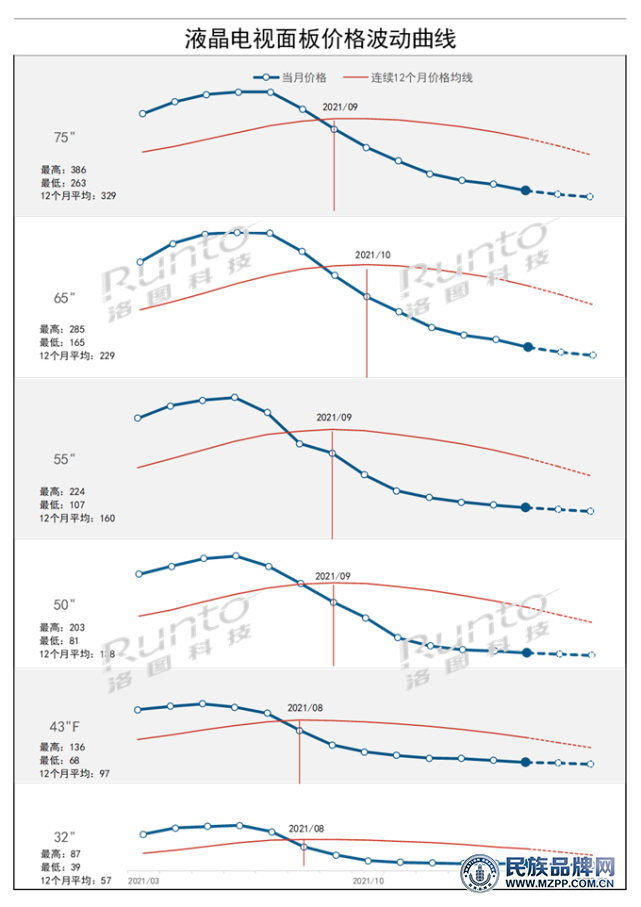 2022年4月液晶電視面板價(jià)格走勢(shì)