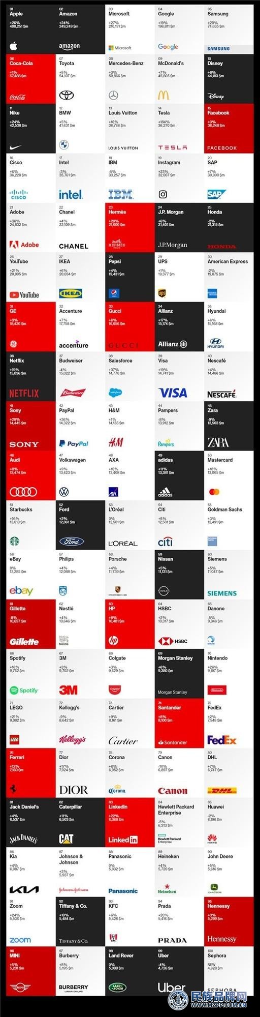 全球最佳品牌100強:中國只有一個品牌上榜
