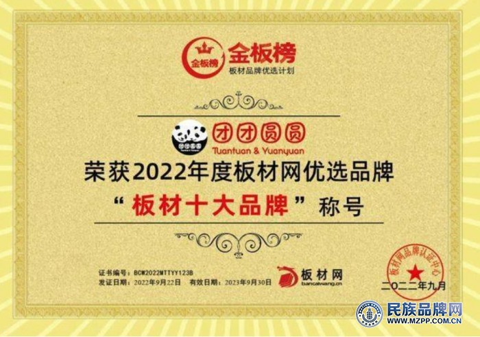 團(tuán)團(tuán)圓圓板材憑借30多年來一貫的產(chǎn)品原創(chuàng)和創(chuàng)新態(tài)度,領(lǐng)先同行的品牌實(shí)力和產(chǎn)品力,貼近市場需求的環(huán)保研究和創(chuàng)新理念,潮流的色彩設(shè)計(jì)特色,在板材網(wǎng)舉辦的2022年度金盤榜中榮獲“十大板材品牌”!