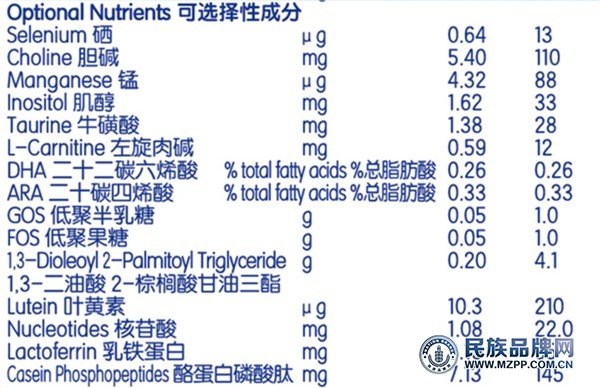 3、惠氏啟賦添加的可選擇性成分比合生元派星多2種,但是也遠(yuǎn)不及澳優(yōu)能立多,同樣也未添加益生菌。